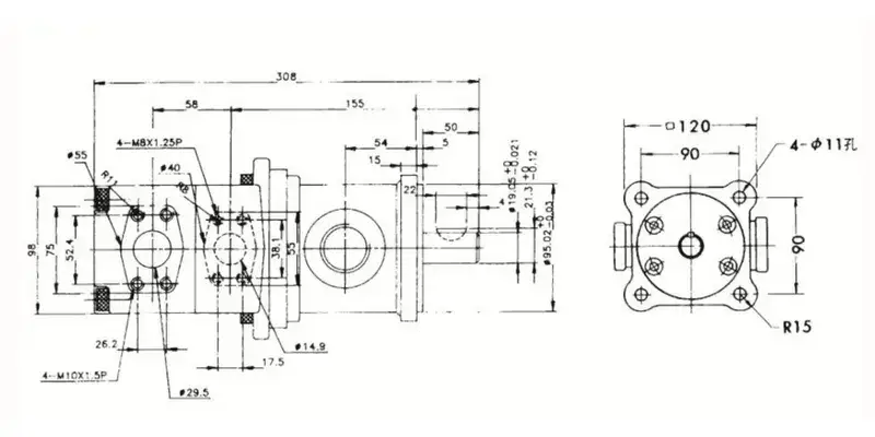 | Модель | Рабочий объем (куб.см/об) | Макс. давление (кгс/см²) | Скорость вращения (об/мин) | ||||